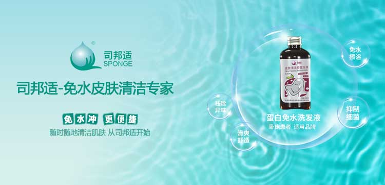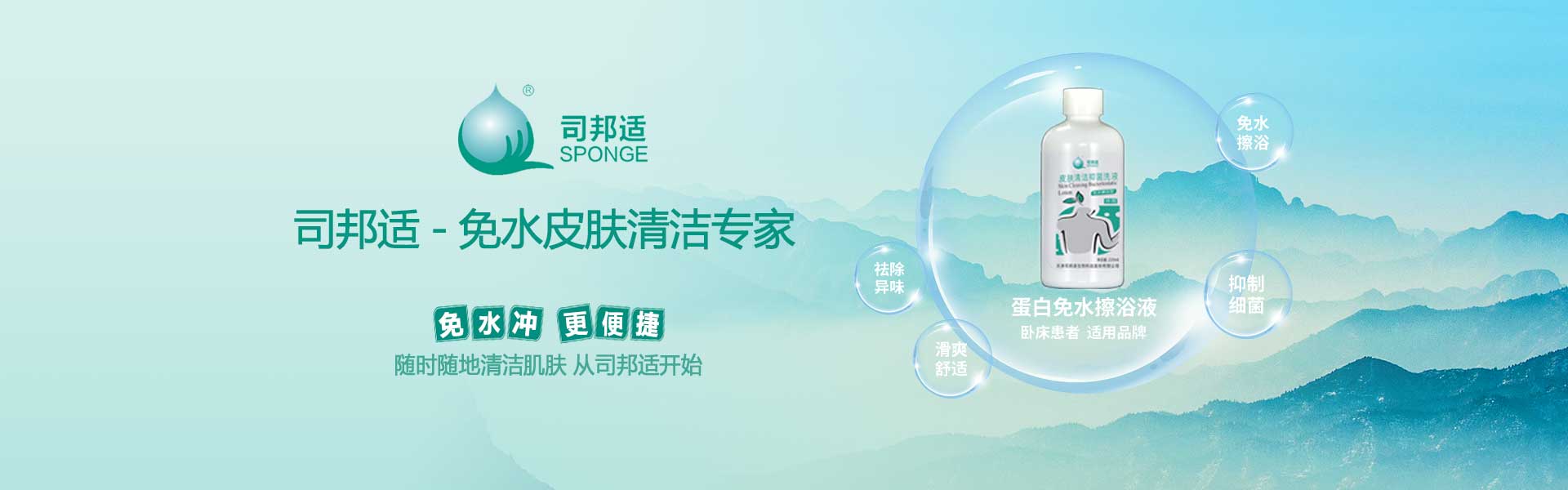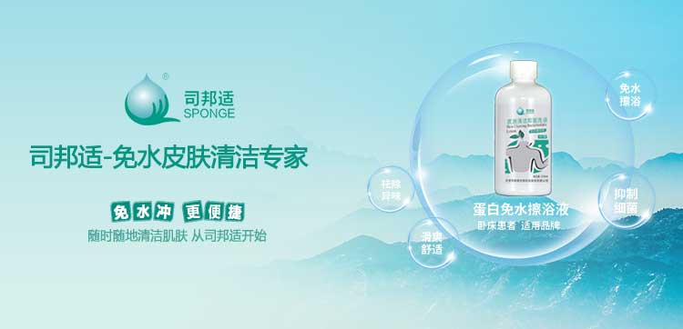 ? ? ? ?本公司研發(fā)的司邦適蛋白表面活性因子,不僅對(duì)人體皮膚及粘膜沒有刺激,同時(shí)具有對(duì)皮膚很強(qiáng)的清潔能力;可以祛除人體皮膚上的異味,并且具有較強(qiáng)的抑菌功效。使用后無(wú)需用水沖洗皮膚仍感到舒適爽滑;基于上述原因我們研發(fā)的司邦適免水清潔系列產(chǎn)品。主要適用于各種主觀或者客觀上不方便全身或局部皮膚清潔的人群。